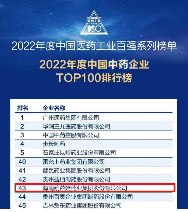 尊龙凯龙时人生就是博网址药业集团连续4年荣登“中国中药企业TOP100排行榜”,排名上升至第43位